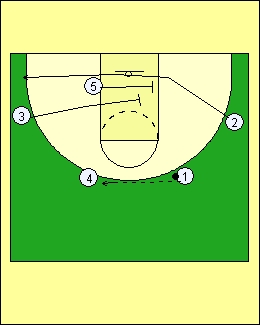 Play (Part I) (#4) sets ball screen. (#1) dribbles across. |