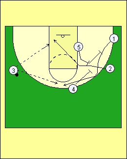 2 St. Joe's Early Offense #2 reverses the ball to #4 who passes to #3 who has broken down and then cut out to get open for the pass from #4. |