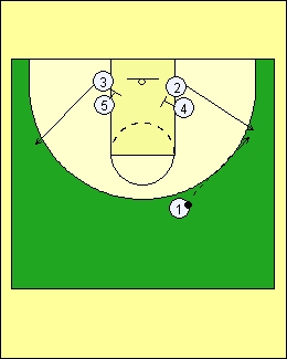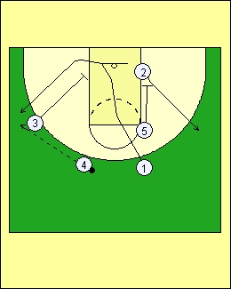 Play vs. Man Defense After passing to (#2), (#1) frees himself up for a return pass from (#2) immediately. (#4) after picking rolls up to the elbow asking for a pass from (#2) and / or (#1), but just as a decoy. |